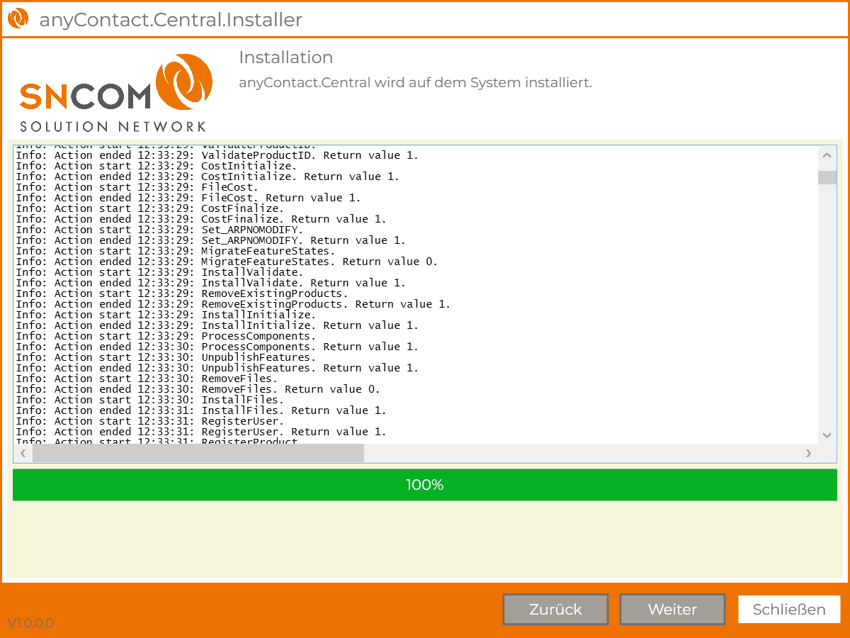 Das MSI Setup prüft beim Start, ob bereits eine installierte Version existiert und vergleicht die Versionen miteinander. Sollte das Setup eine neuere Version beinhalten, dann werden die Dialoge deaktiviert und es kann nur mit “Weiter” und am Ende mit “Installation starten“ die Installation gestartet werden.