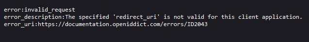 Dies bedeutet, dass der "redirect_uri"-Parameter in der aufgerufenen URL nicht mit dem Wert in der Datenbank übereinstimmt. Der "redirect_uri"-Parameter ist immer URL-kodiert und kann zur Kontrolle dekodiert werden, zum Beispiel mithilfe der Website https://www.urldecoder.org/de/ oder der Anwendung “DevToys”.