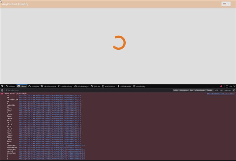 Wenn beim ersten Start der Webanwendung ein endloser Spinner angezeigt wird, sind folgende Schritte erforderlich: