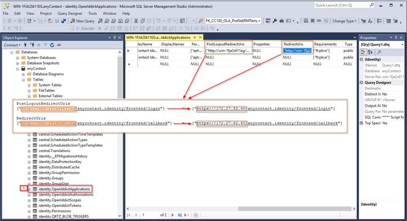 Um dieses Problem zu beheben, müssen die Spalten "PostLogoutUris" und "RedirectUri" in der Tabelle "OpenIddictApplications" in der Datenbank wie folgt angepasst werden: