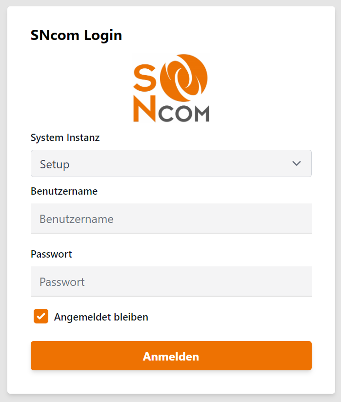 Hier muss man sich initial mit dem Benutzer superadmin und dem Kennwort SNcom01! anmelden.