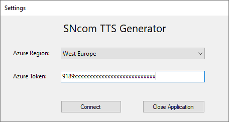 Beim Ersten Start wird der Azure Token und die dazugehörige Region benötigt. Die Eingaben werden in einer Datei persistiert.