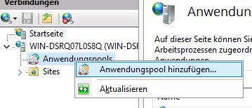 Mit einem Rechtsklick auf „Anwendungspools" kann ein neuer Anwendungspool erstellt werden.