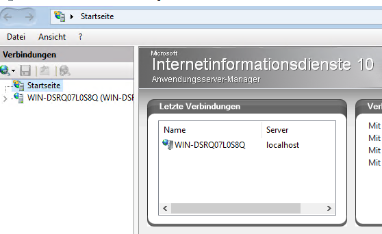 Die folgenden Schritte werden mithilfe des IIS-Mangers durchgeführt. Dieser kann über die Windowssuche unter dem Namen „inetmgr" gestartet werden.