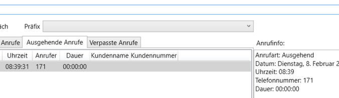 Durch die Eingabe einer Telefonnummer in das Suchfeld werden nur Anrufe gezeigt, die die gesuchte Eingabe enthalten.