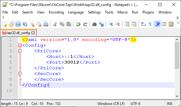 Sollte die CTI Applikation und der CTI Core nicht auf dem selben Server installiert sein, muss die Konfiguration der tapi32.dll des CTI Core angepasst werden. Die Konfiguration der tapi32.dll erfolgt über die beiliegende “tapi32.dll_config” Datei.