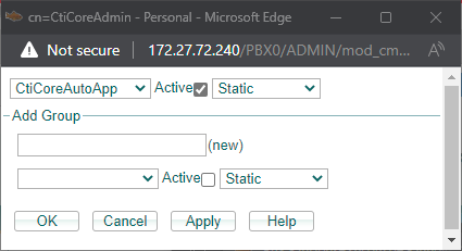Zusätzlich zu der Berechtigung ist dem User die Gruppe “CtiCoreAutoApp” mit dem Active Flag zuzuordnen.