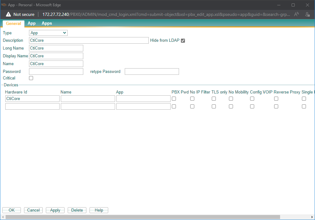 Der Name der CTI Core innovaphone App lautet “CtiCore”. Sollte ein anderer Name verwendet werden, ist eine erweiterte Konfiguration im CTI Core erforderlich.