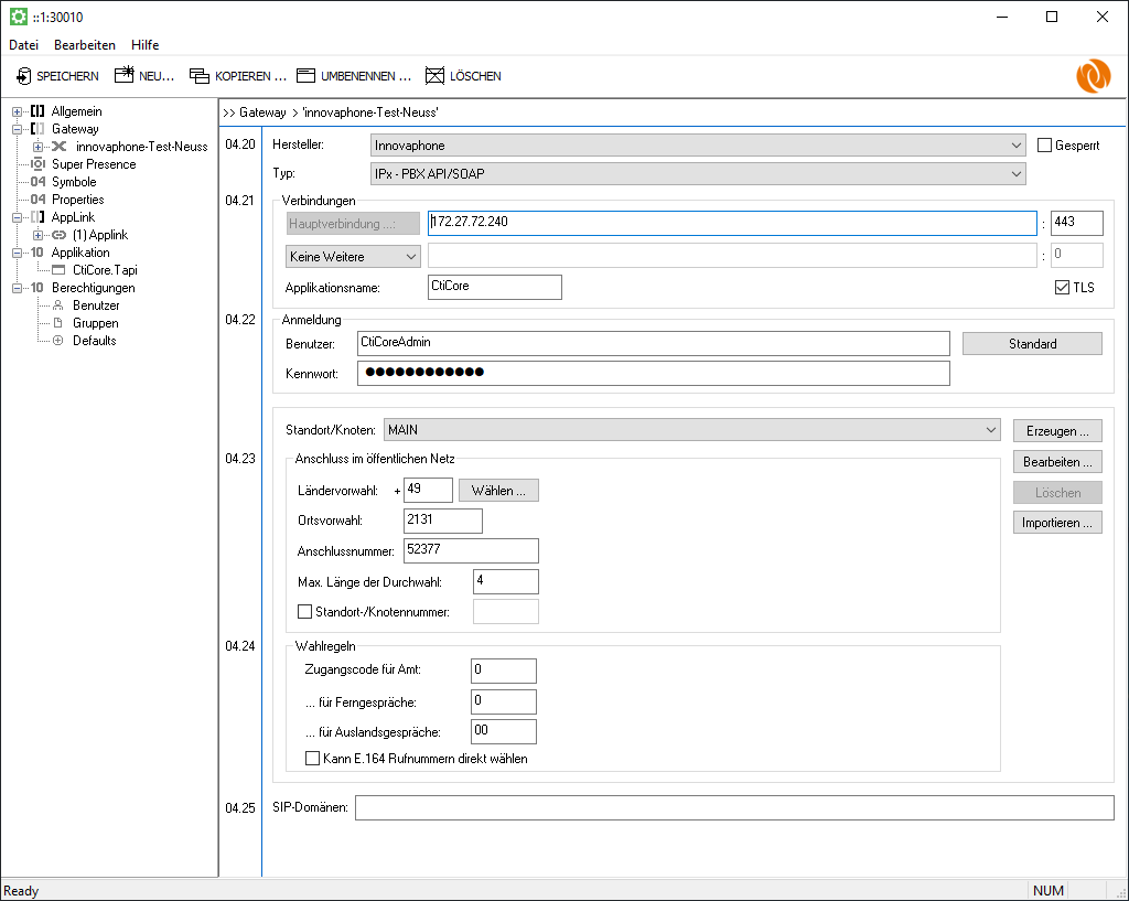 Typ | Hier wird der PBX-Typ ausgewählt. Im Falle von innovaphone gibt es nur einen Typen. | IPx - PBX API/SOAP |