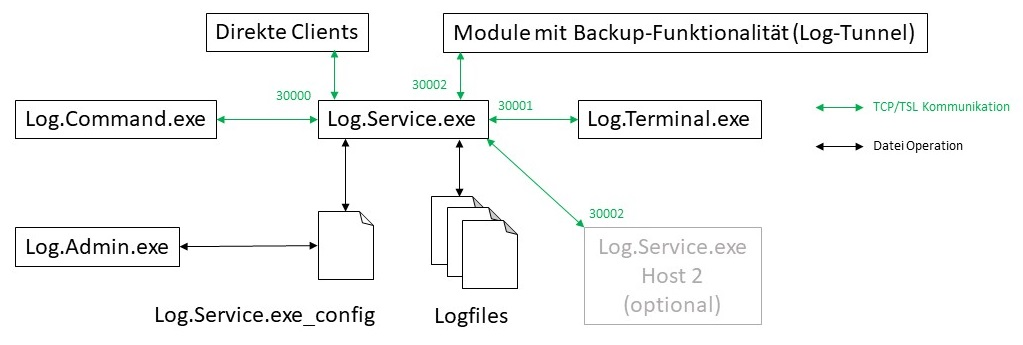 Auf einem Host werden folgende Aktiv-Komponenten für das Log System installiert: