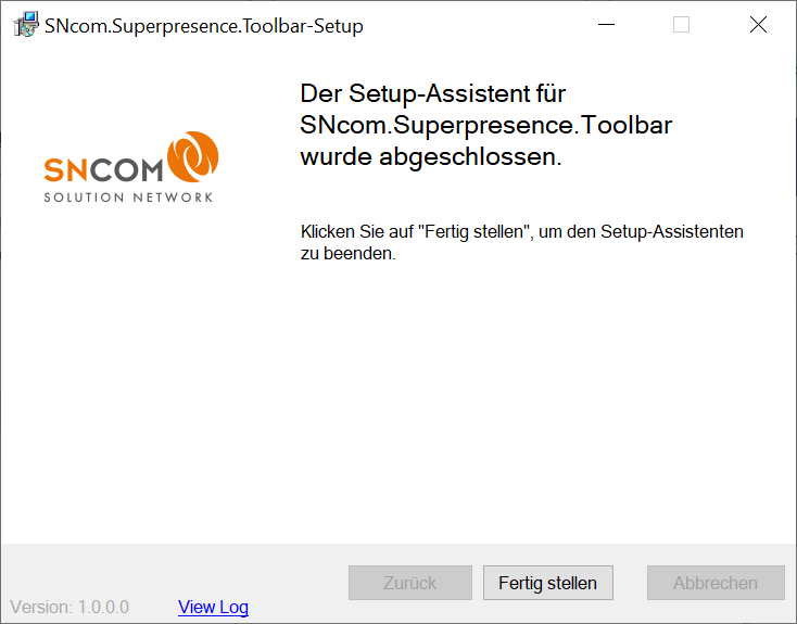 Nachdem die Konfiguration abgeschlossen ist, starten Sie mit einem Klick auf „Weiter" die Installation. Anschließend ist die Toolbar installiert. Mit einem Klick auf „Fertigstellen" beenden Sie den Assistenten.