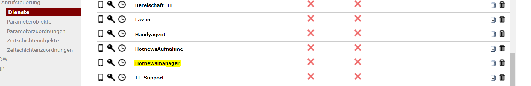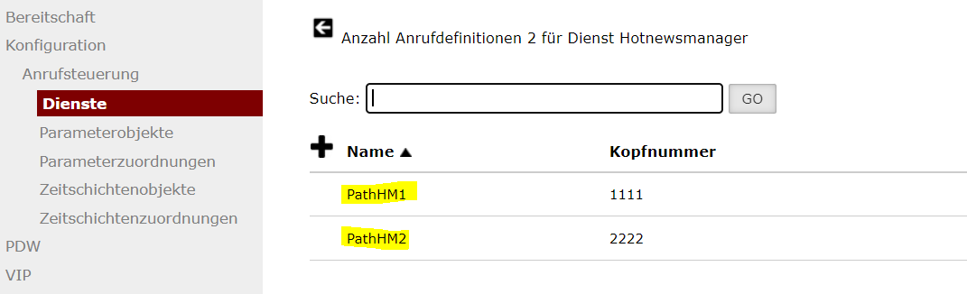 Im VMT muss ein Callflow (Dienst) mit dem Namen „Hotnewsmanager“ angelegt werden.
