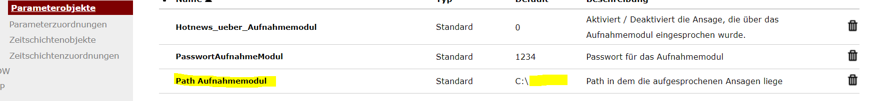 Der Parameter hier im Beispiel ist „PathHM1“. Dieser wird später für den Path der Ansagen verwendet.