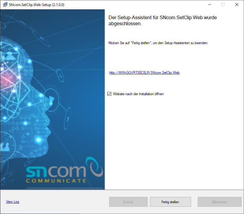 Nach Abschluss der Installation wird folgender Dialog angezeigt.