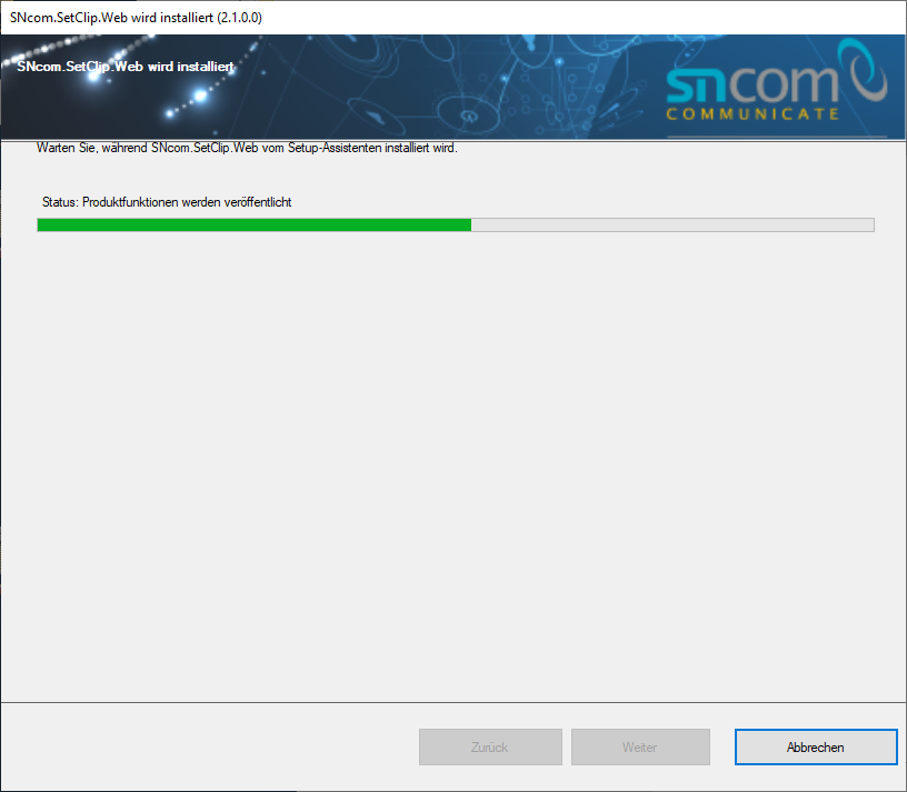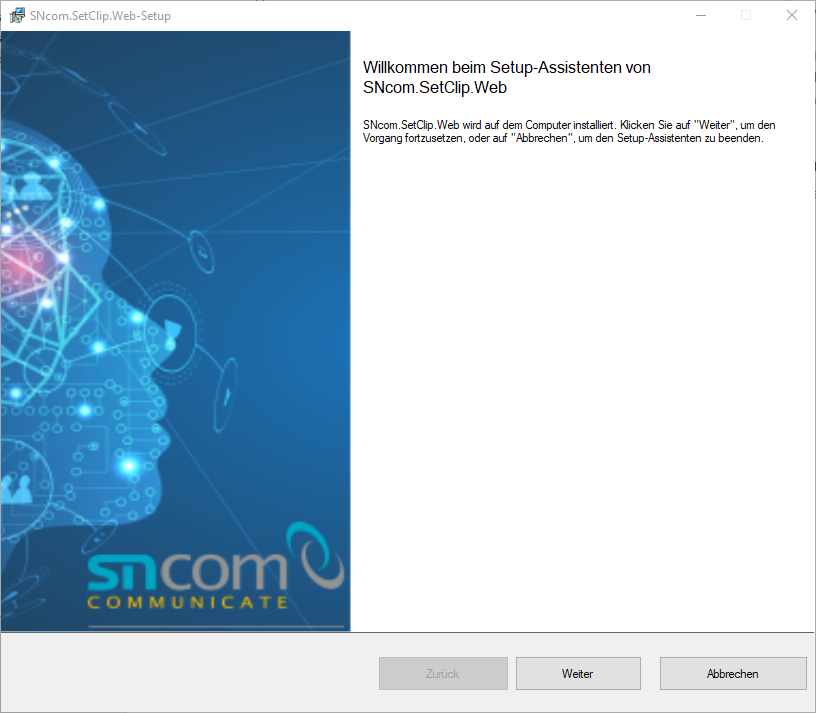 Nach dem Öffnen des Installationsdatei „SNcom.Innovaphone.Web.exe" erscheint der Installationsassistent.