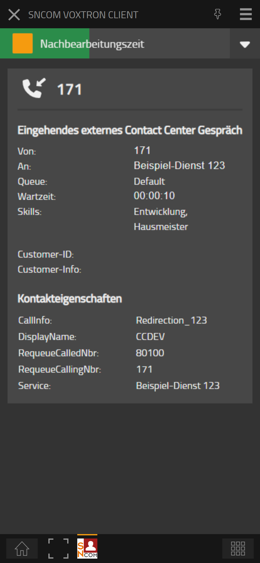 Nachdem ein Anruf beendet wurde, startet die Nachbearbeitungszeit (siehe Abbildung: Nachbearbeitungszeit)
