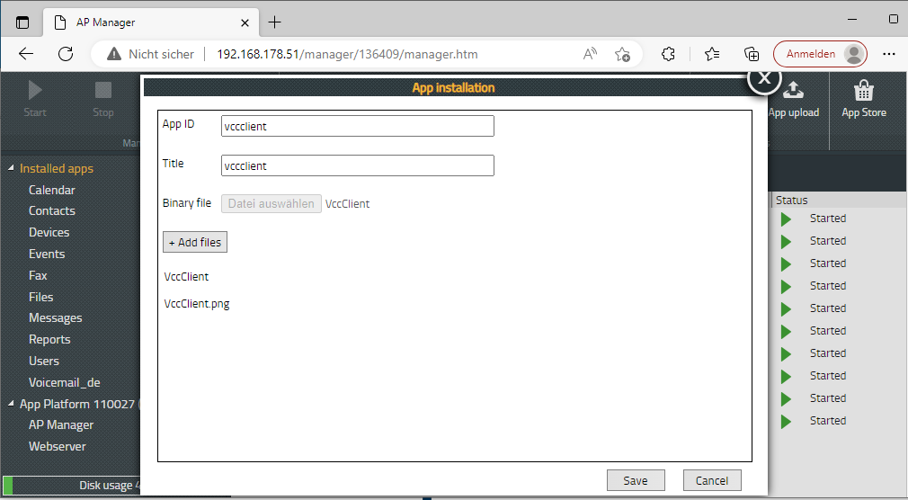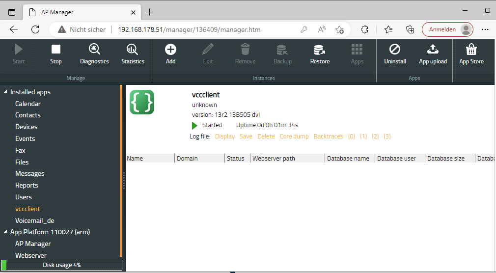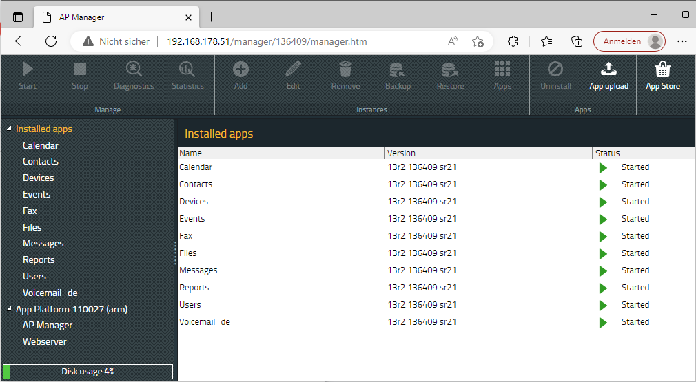 Loggen Sie sich in den App Manager auf ihrer Innovaphone App Platform ein.