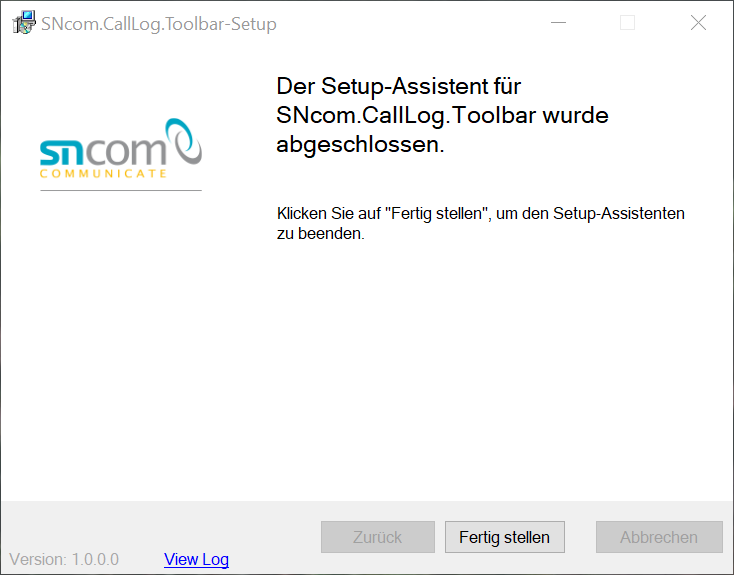 Nachdem die Konfiguration abgeschlossen ist, starten Sie mit einem Klick auf „Weiter" die Installation. Anschließend ist die Toolbar installiert. Mit einem Klick auf „Fertigstellen" beenden Sie den Assistenten.