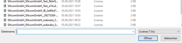 Es können nur Lizenzdateien (.lic) ausgewählt werden!