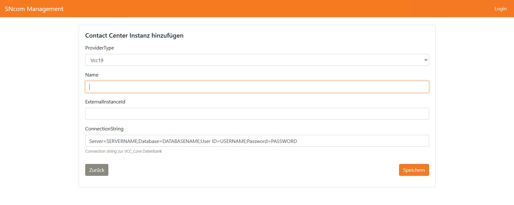 Nachdem die Datenbank aktualisiert wurde, muss eine erste Contact Center Instanz hinzugefügt werden.