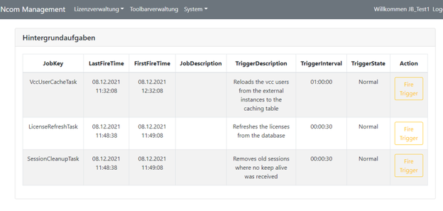 Über den Button „Fire Trigger" können die Aufgaben außerhalb ihres normalen Intervalls, direkt ausgeführt werden.