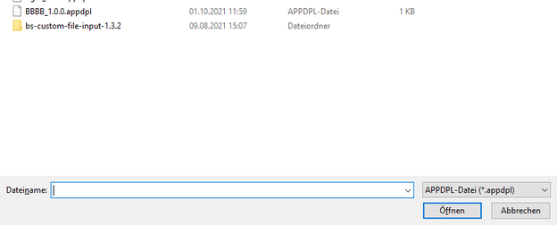 Es können nur App Deployment Dateien (.appdpl) ausgewählt werden!
