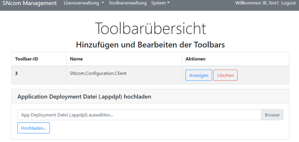 Nach dem Hochladen einer Toolbar App Deployment Datei, muss eine initiale Konfiguration erfolgen (Siehe 4.4.2)