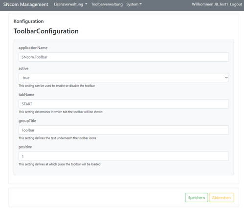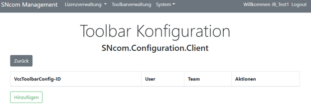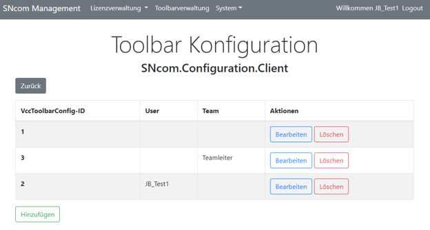 Die Toolbar Konfigurationen können hinzugefügt, bearbeitet und gelöscht werden.