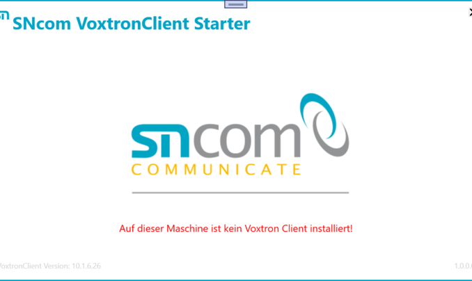 Nach dem Starten des Voxtron Client Starter prüft dieser zuerst, ob ein VoxtronClient auf dem System installiert ist.
