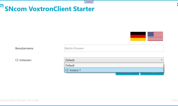 Sollte es für den Benutzer nur eine Instanz geben, dann wird der VoxtronClient automatisch gestartet und an dieser Instanz angemeldet.