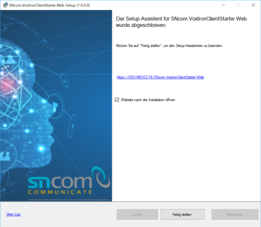 Nach Abschluss der Installation wird folgender Dialog angezeigt.