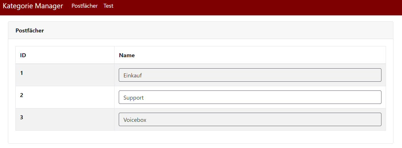 Nun werden alle Kategorien des jeweiligen Postfaches angezeigt, sofern welche vorhanden sind.