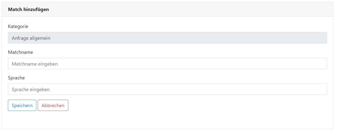 Mit einem Klick auf den Hinzufügen-Button oben rechts öffnet sich ein Formular (siehe Bild: Match hinzufügen).
