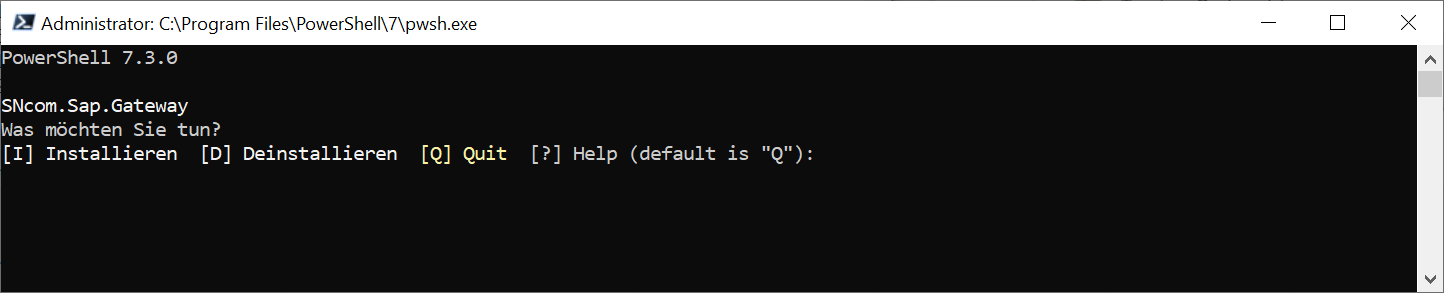 Auswahl über das Skript zum (De)Installieren des SAP Gateway