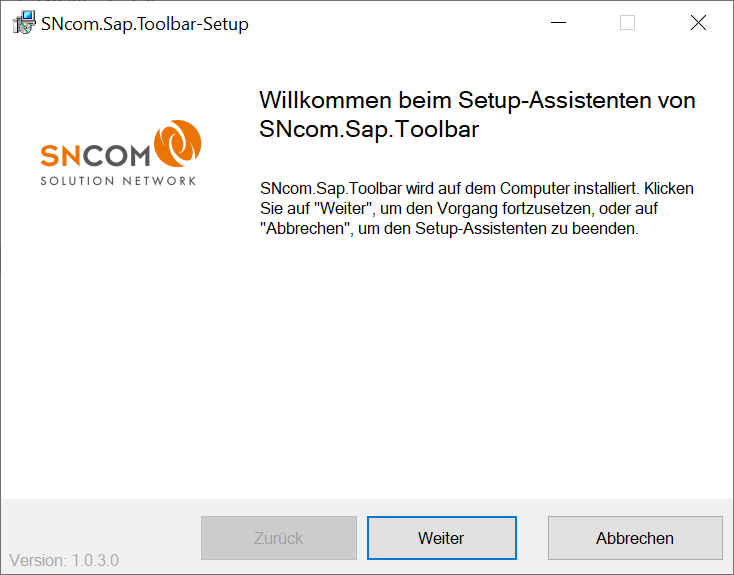 Die SAP Toolbar wird mit einem MSI-Installationspaket ausgeliefert. Nach dem Ausführen der Installationsdatei erscheint der Installationsassistent.
